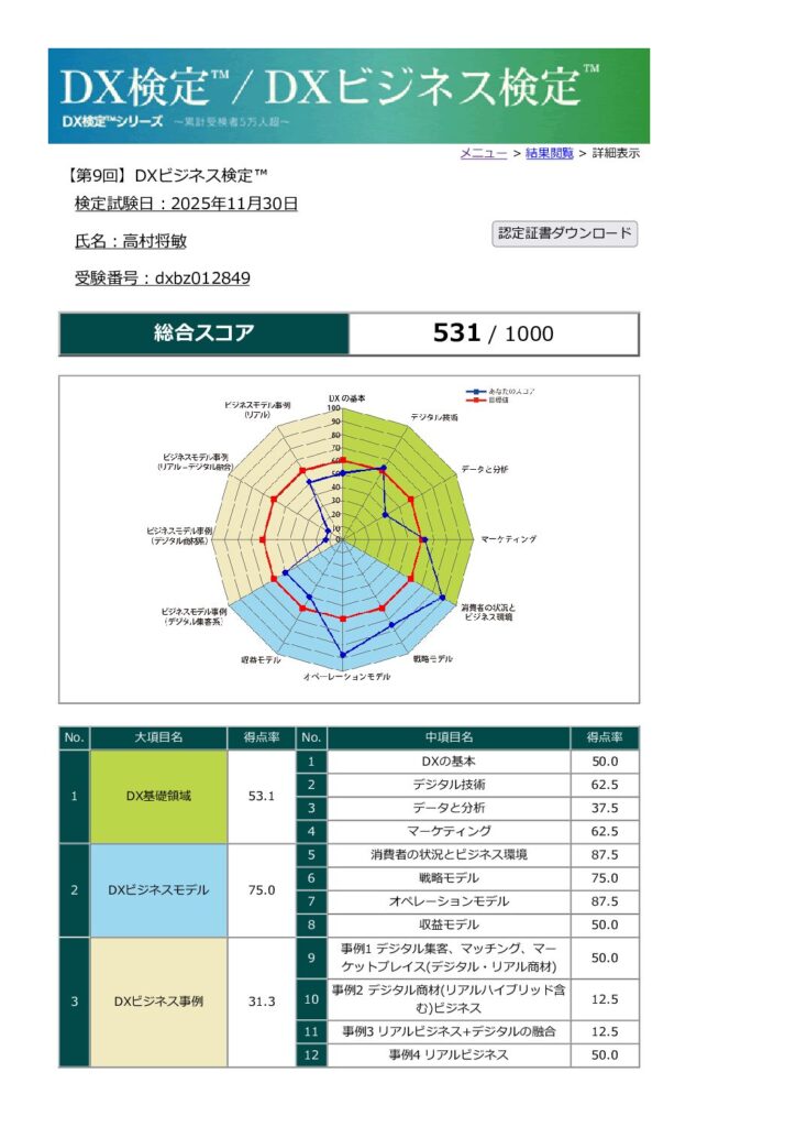 先日、「DXビジネス検定™」を受験しまして、本日結果が出ました。 この検定... -
