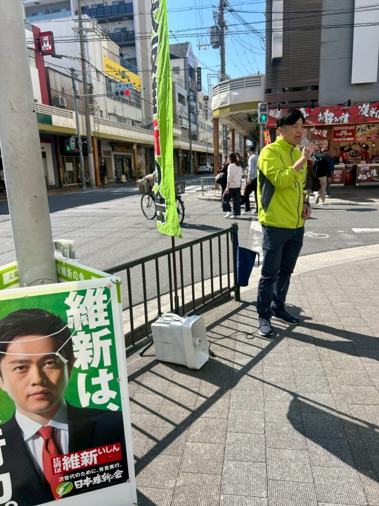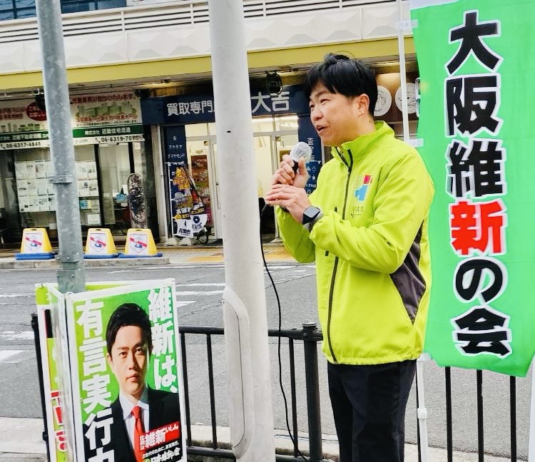 泉町LIFE前にて街頭活動|大阪維新の会統一行動デー
