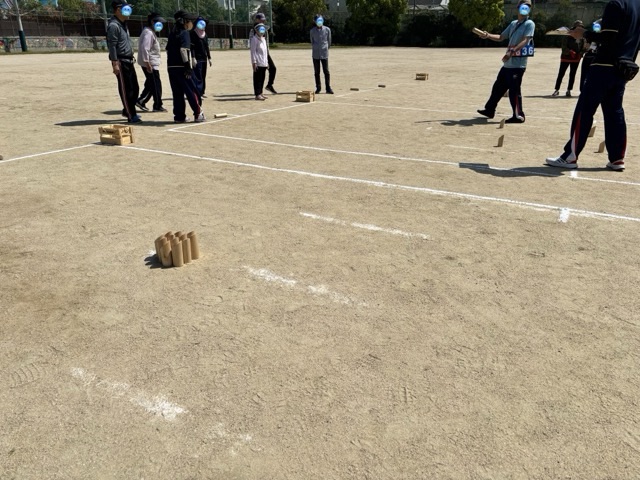 本日は晴天のもと、吹田第三中学校のグラウンドで体振主催のイベント「モルック」と「ペタンク」が開催されました。