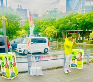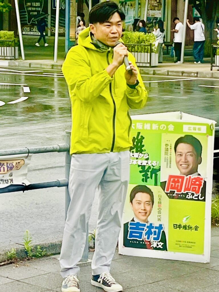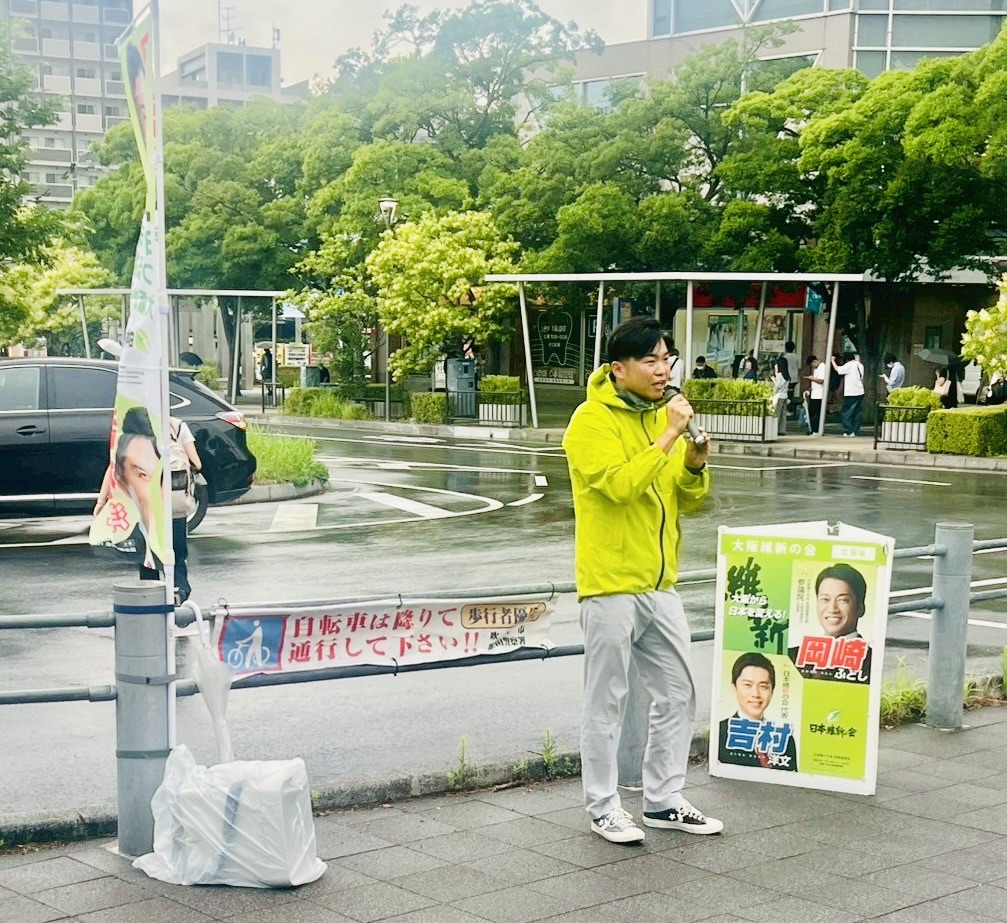 本日はJR吹田駅北口にて、杉江ゆうすけ府議にご一緒させて頂き、夕方のご挨拶と岡崎ふとしさんのチラシ配り。