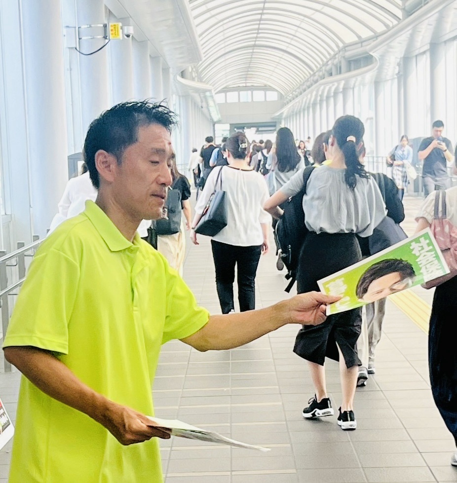大阪府議会議員の杉江ゆうすけ議員、そして吹田市議会から乾さとし議員、井口なおみ議員、橋本じゅん議員、川田ひさし議員とともに、確認団体ビラの配布活動を行いました。