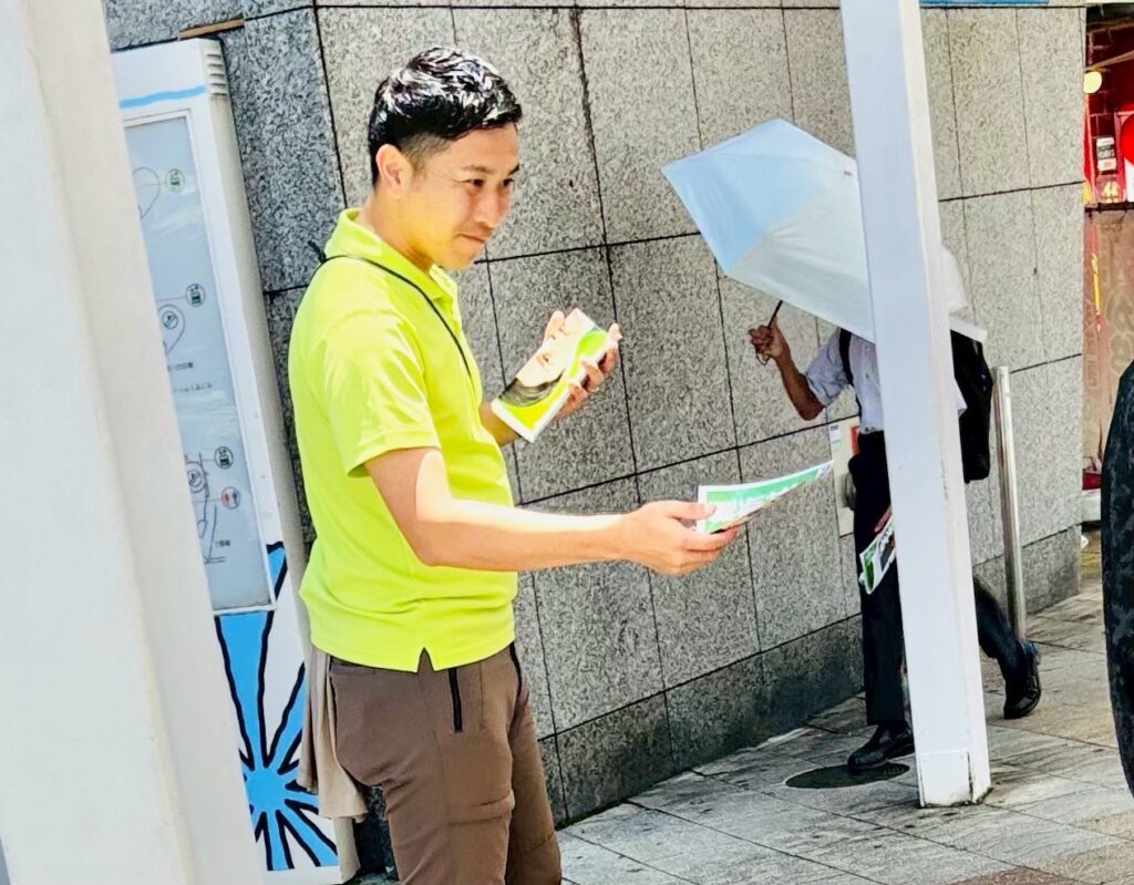 同行いただいたのは、吹田市議会から乾さとし議員、江口礼四郎議員、今西ヨウジ議員、林やすひろ議員、そして摂津市からは市政対策委員の光田あまねさん。皆さまとともに、地域の皆さまに確認団体のビラを配布しながら、現場の声に耳を傾け、思いを届ける活動を展開しました。