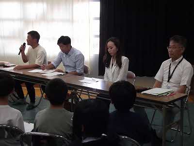 私から授業の冒頭で、「主権者とは、このまちの未来を描き、創り出す主人公である皆さん自身です。吹田市の未来に興味を持ち、今この瞬間からまちづくりの主役として行動していきましょう」と伝えました。