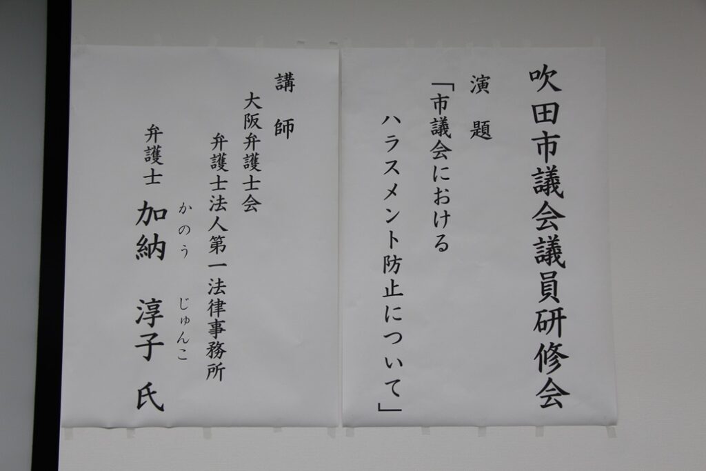 今回の研修テーマは、「市議会におけるハラスメント防止について」という極めて重要な内容でした。