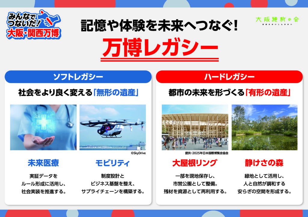 これらのレガシーは、万博が残した記憶と体験を未来へとつなぎ、大阪の都市発展に貢献していくことになります