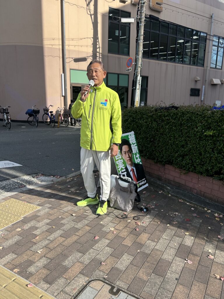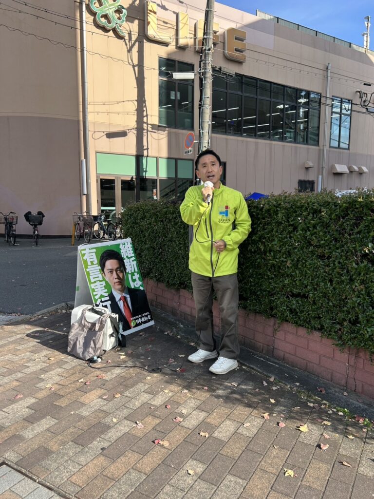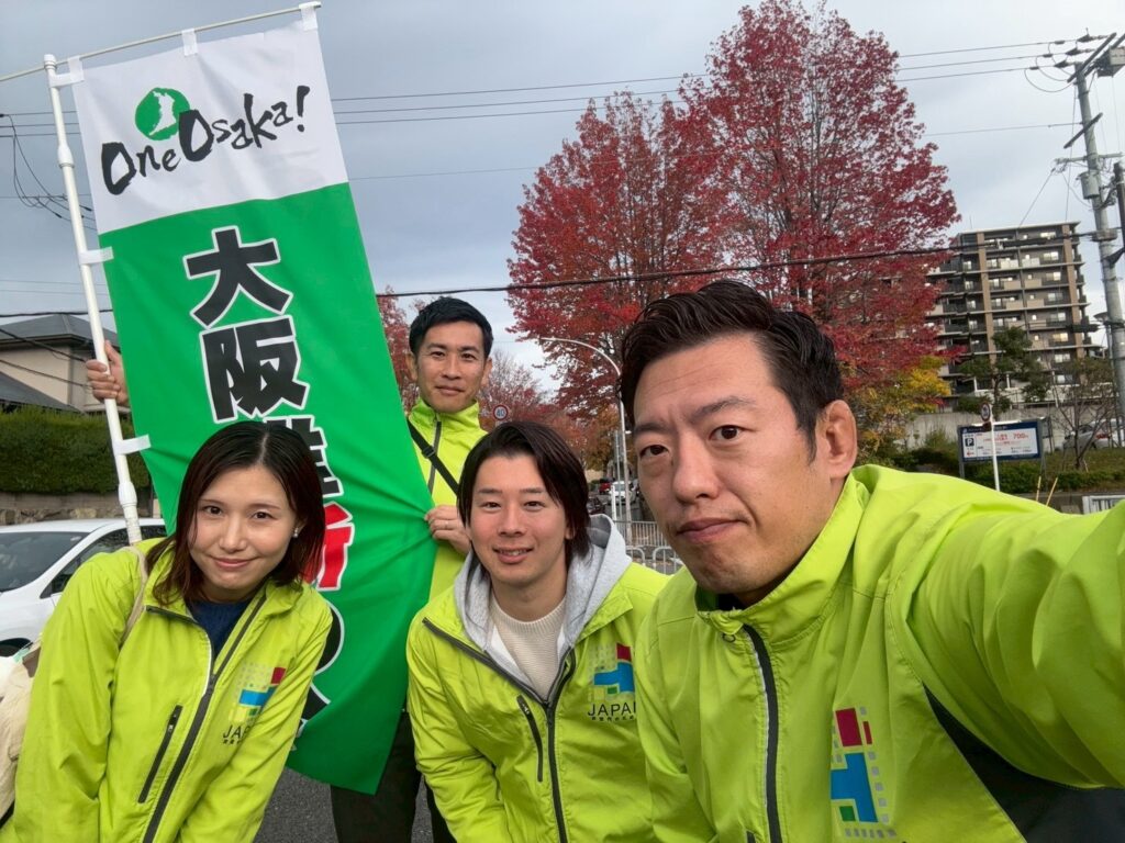 本日は、乾さとし議員、今西ヨウジ議員、川田ひさし議員、井口なおみ議員、そして私の5名で、「大阪維新の会 統一行動デー」の一環として街頭活動を行いました。