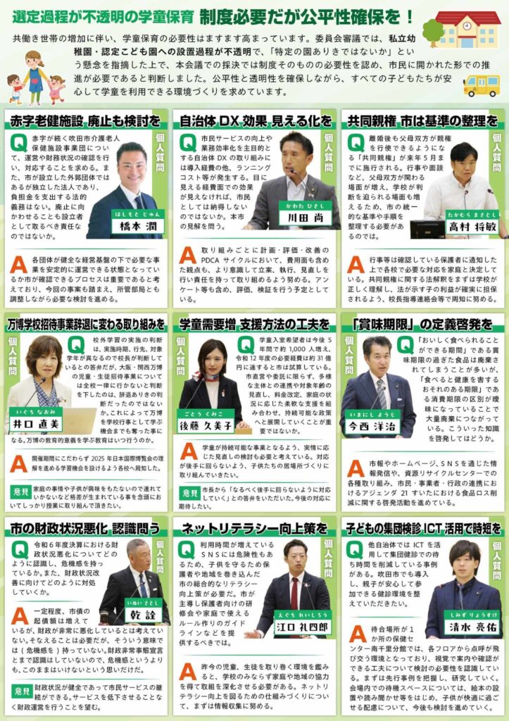 少しご報告が遅くなりましたが、令和7年(2025年)9月定例会が10月1日に閉会し、大阪維新の会 吹田市議団としての広報誌「定例会号」を作成いたしました。