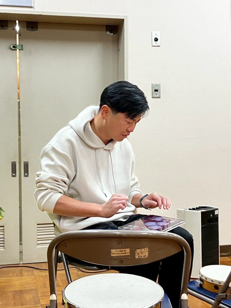今回はパーカッション担当として、iPadを片手に意気揚々と現場入り。