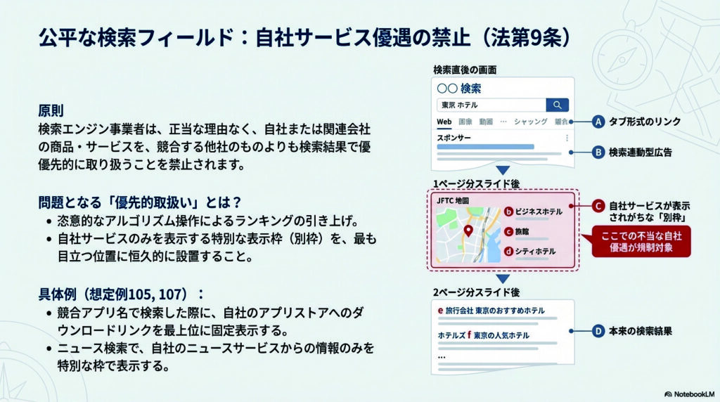 8. 公平な検索フィールド|自社サービス優遇の禁止(法第9条)