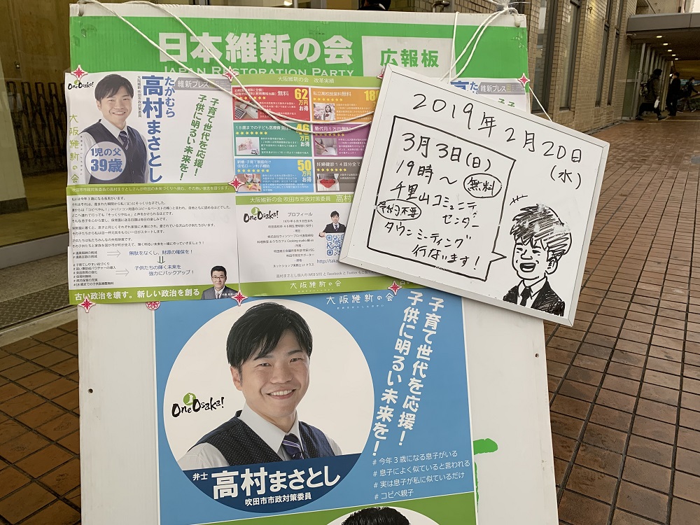 2019年3月3日(日)19時より、大阪維新の会の大阪府・吹田支部の合同議会報告会(決起... -