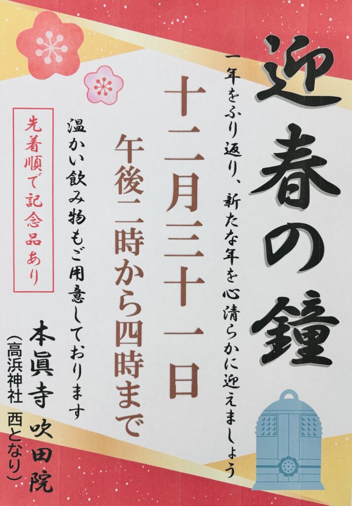 [お知らせ] 除夜の鐘より一足早く|本眞寺で迎春の鐘
